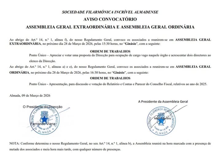 ACTIVIDADES A DECORRER NA SOCIEDADE FILARMÓNICA INCRÍVEL ALMADENSE